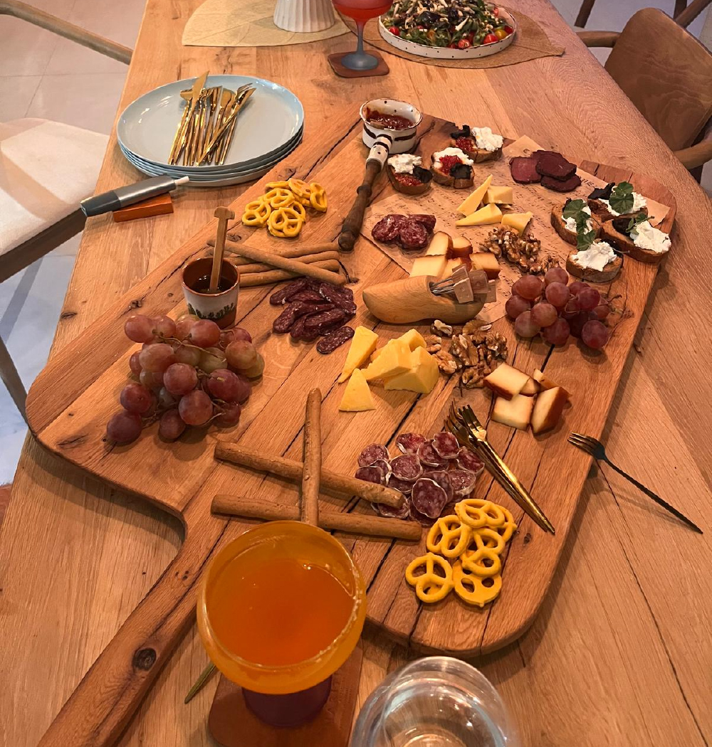 Büyük boy sunum tepsisi : silinmiş meşe ağacından ölçüleri sap hariç 50*72cm boyutlarında. Silinmiş yüzeyli sunumluk veya kesme tahtası olarak alt kısmında ayakları kayıtlar üzüerinde durduğu için kullanım kolaylığı sağlıyor.Gıdaya uygun doğal yağ ile koruması yapılmıştır.