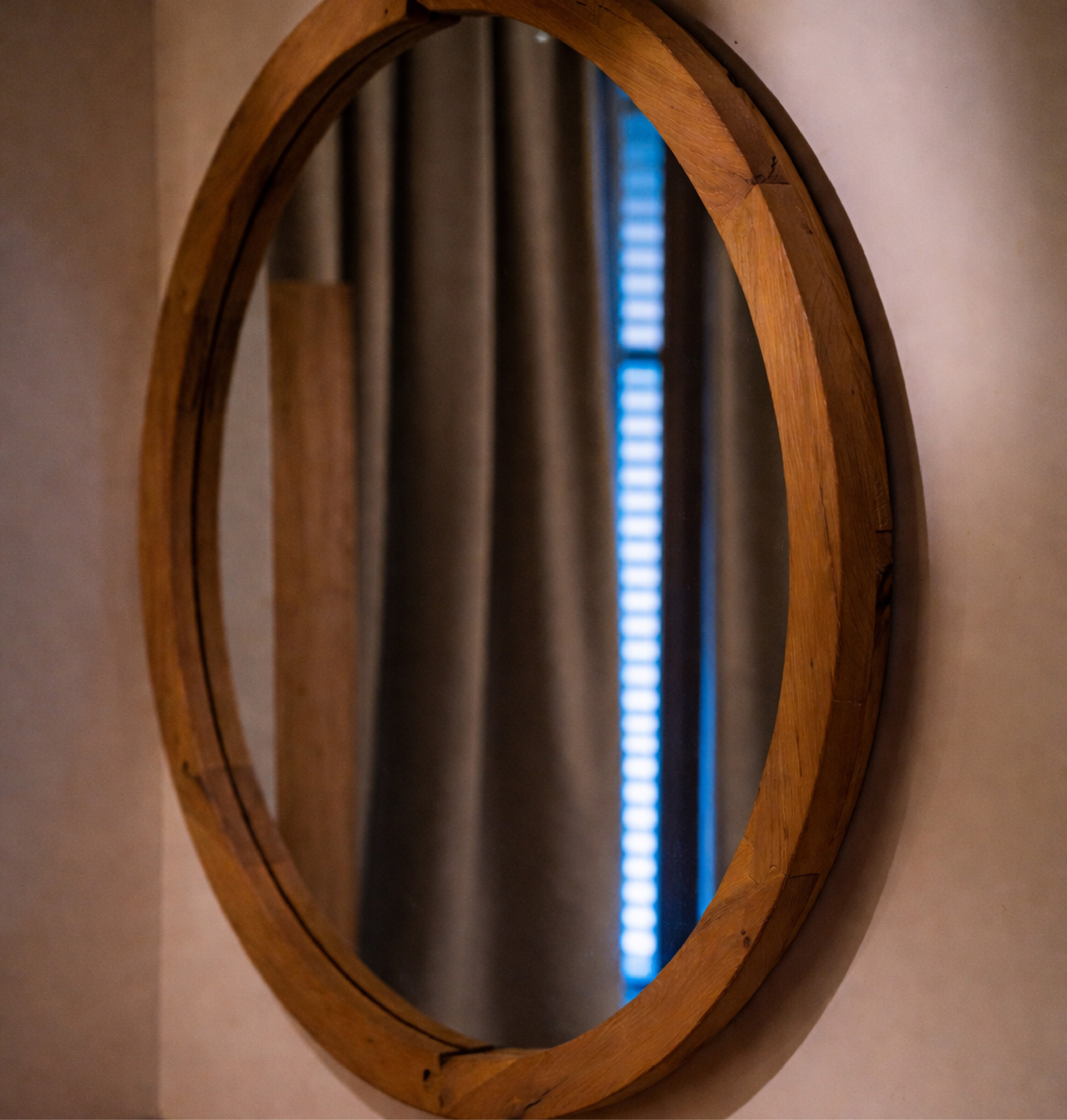 Yuvarlak Meşe : çap 75 cm olan silinmiş meşenin cnc ile geçme sistemlerle yapboz gibi birbiirne bağlanmasıyla nazik bitişler sergileyen aynamız oldukça şık ve estetik olarak farklı çaplarda üretilmektedir.